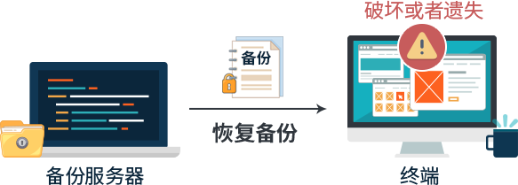 终端文件被病毒破坏或勒索病毒加密,导致文件无法再使用,可将正常的文件从文件备份服务器恢复到终端。