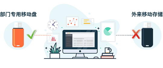 IP-guard移动存储管控模块能分类规范移动存储设备的使用,应用权限控制与移动盘加密实现“内盘内用,外盘外用”,防范移动存储泄密。