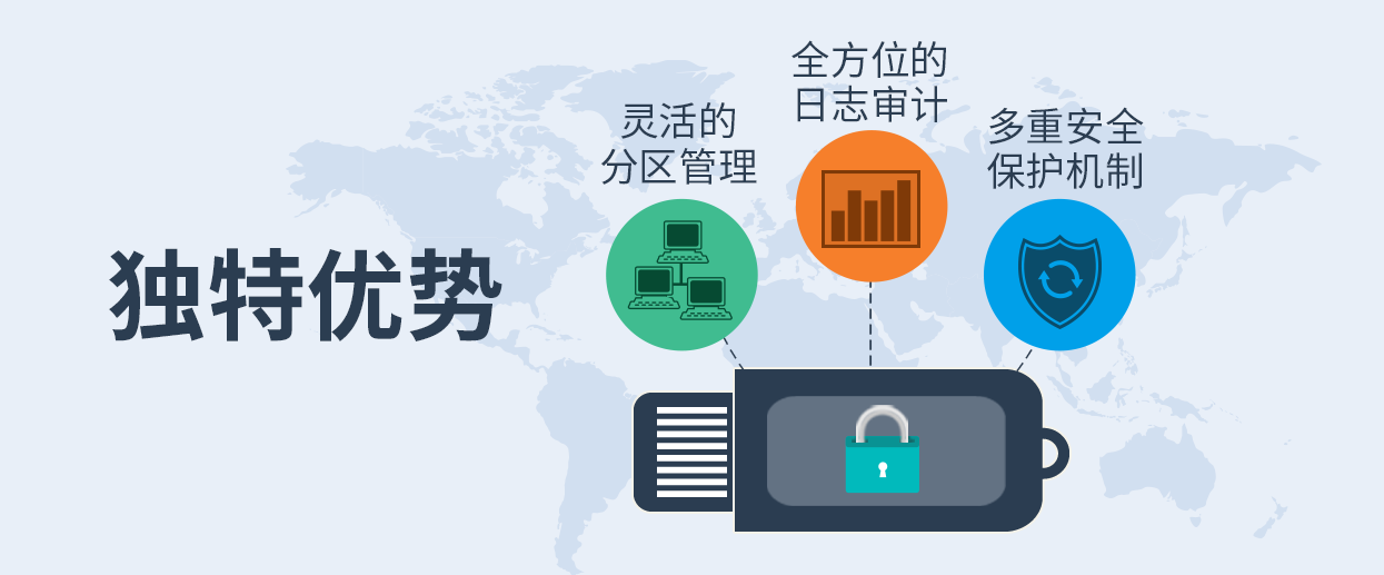 IP-guard安全U盘凭借安全的身份鉴别机制,灵活的分区管理,完善的生命周期管理,为企业内外部文件流通保驾护航,让U盘传输数据再无后顾之忧!