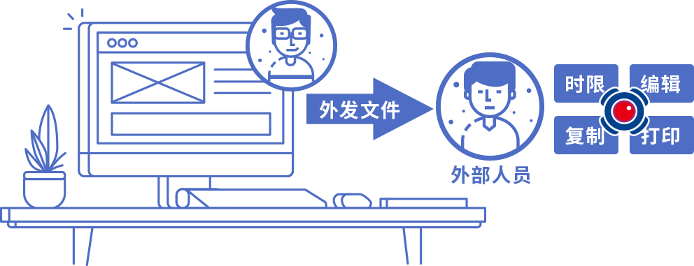 对于无法安装TDRMS客户端的情况,TDRMS加密用户可以通过制作外发文件的方式,提供外部人员,让他们受限打开查看文件。(外发格式文件会默认限制打开文件的时限、编辑、复制、打印等权限)