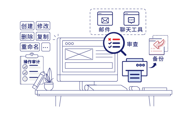 - 审计员工文档操作行为,包括文档的创建、修改、拷贝、移动、复制、删除等