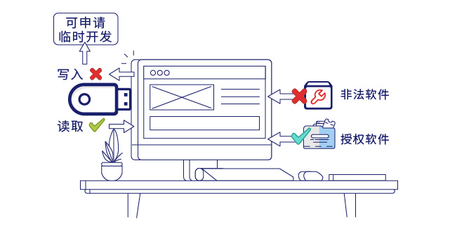 - 在U盘管理方面,公司希望所有U盘仅允许拷入文件,不允许拷出文件,特殊情况需申请临时开放拷出权限