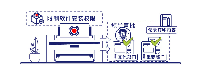 - 限制全体员工的打印行为,对需要打印的部门开放打印机使用权限,其他部门需要打印则向领导申请使用,同时记录打印的文件