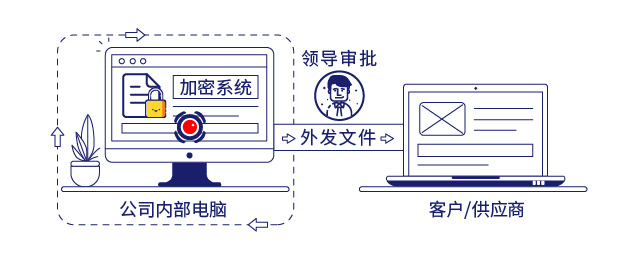 - 因业务需要外传加密文档给供应商和客户查看,员工需提交申请解密流程,领导审批通过后解密成明文外传方可打开查看