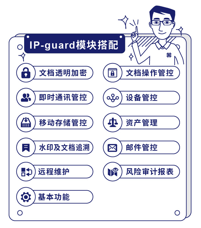 - 员工电脑频繁使用U盘拷贝、邮件外发等方式对外发送公司文档,公司缺少相应的管控审计手段
