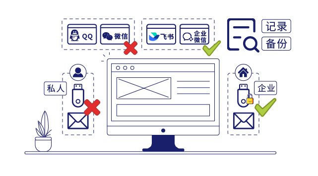 - 公司内部交互和与外部沟通需要用到聊天工具以及邮件等方式沟通,需要规范文件的发送和审计发送内容