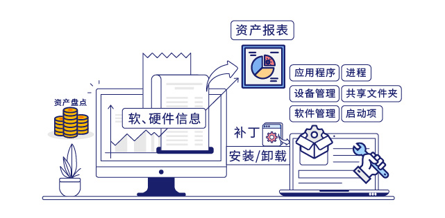 - 公司终端电脑数量多,运维人员进行资产统计、补丁安装、远程维护等运维工作量大