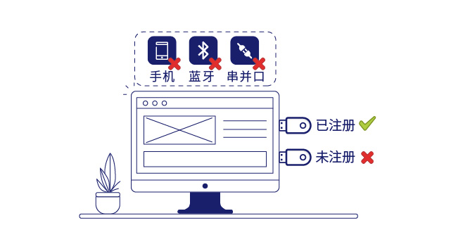 - 限制员工电脑接入智能手机、蓝牙、串并口等外接设备