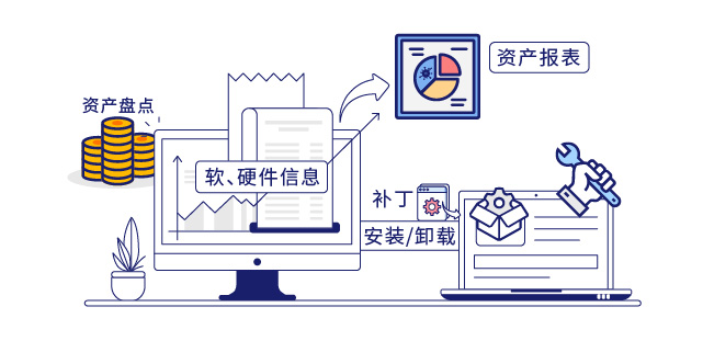 - 收集员工电脑的软件以及硬件信息,制作成软硬件资产报表来进行统一盘点与管理,并开启远程功能,管理员可直接远程到员工电脑处理运维问题