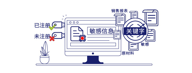 - 公司批量采购一批U盘格式化成加密盘,分发给核心部门使用,加密盘只能在公司内使用,带离公司无法使用,同时禁止私人U盘接入员工电脑