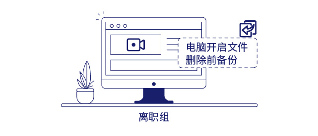 - 员工提出离职,处在交接期时,将员工电脑移入离职组,离职组内所有电脑开启文件删除前备份以及全天候录屏功能,防止破坏资料并且记录屏幕画面