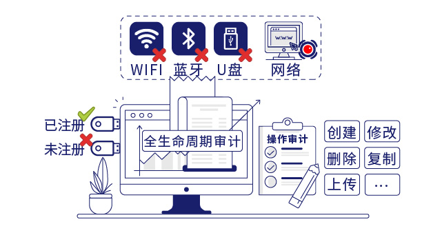 - 公司需要对员工的外接设备进行管控,限制私人USB、随身WiFi、蓝牙等设备使用,减少数据通过物理设备泄露的风险