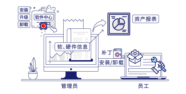 - 收集员工每台电脑的软件以及硬件信息,并制作成软硬件资产报表来进行统一管理